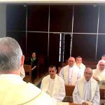 Termino esta breve crónica con tres celebraciones especiales: la primera tuvo lugar el lunes con la celebración de la Eucaristía en la capilla de las Apariciones, presidida por D. Augusto César, obispo paúl emérito; la segunda tuvo lugar al día siguiente, fiesta nacional de la revolución de los Claveles. Después de la primera sesión, tuvimos un encuentro con muchos misioneros de la Provincia para ver y comentar un Power Point sobre las cuatro etapas de su propia historia, seguido de la comida con la presencia de D. Augusto César y el obispo de Fátima, D. Antonio; y el último día, una excursión a la ciudad de Batalha para ver la catedral gótica y los claustros así como las grutas de Mira de Aire. Allí, a 120 metros de profundidad, después de recorrer galerías angostas y en caída casi perpendicular, tuvimos la cena, que puso prácticamente el punto y final al encuentro de la CEVIM 2017.