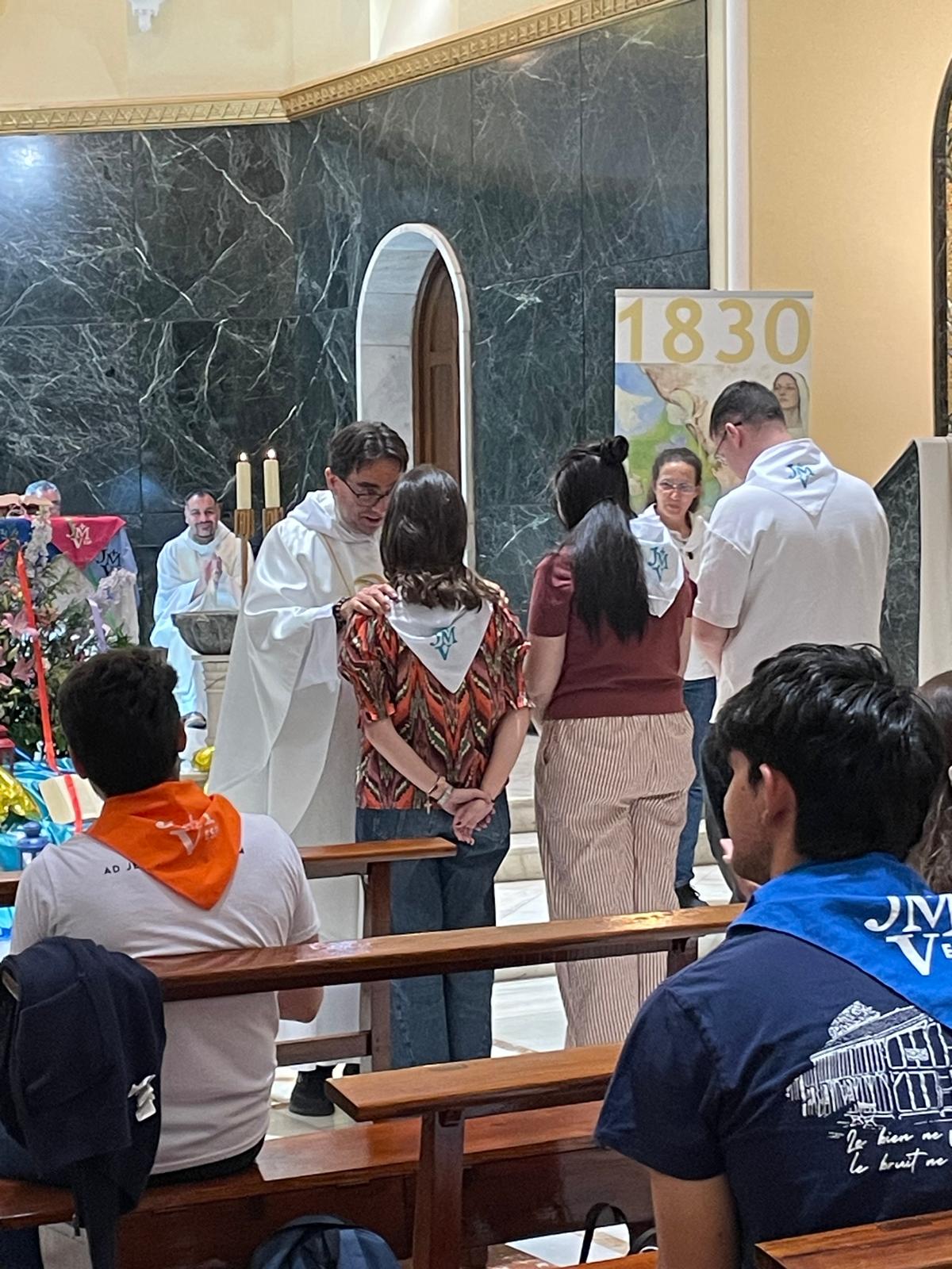 Al finalizar la Eucaristía dirigimos nuestro canto a la Virgen Milagrosa, uniéndonos en una misma acción de gracias por cuanto habíamos vivido. A ella le confiamos el presente y el futuro de JMV, pidiéndole que nos siga acompañando en el camino de la vida y en la misión que compartimos.
