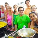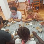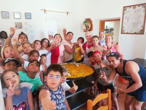 Entre los siete monitores nos encontrábamos nuestro estudiante German y un servidor; a este grupo se unen dos Hijas de la Caridad y una cocinera que nos alimentaban y procuraban que todo marchase sin ningún percance. El viernes tuvimos la grata visita de tres personas que nos agasajaron con una gran paella cartagenera a base de pollo, magra y mucho cariño.