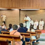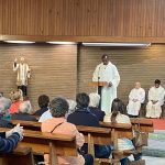 El padre Santiago nos quiso acompañar también en la eucaristía vespertina en honor a san Vicente, celebrada, como viene siendo habitual, en la iglesia del colegio, con presencia de la familia vicenciana de Bizkaia y fieles de nuestras parroquias baracaldesas. Fue un momento significativo de encuentro y reencuentro, que culminó con un aperitivo en el colegio. Ocasión, como siempre, para saludarse, intercambiar pareceres, alegrías y esperanzas, tristezas y zozobras.