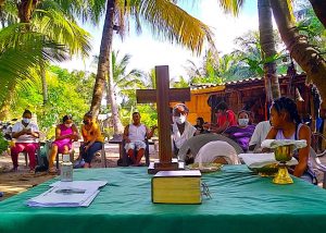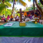 Celebrábamos Nuestra Señora del Rosario, patrona de la comunidad. Este año, por segunda vez, sin cohetes ni festejos. Pero no nos faltó la eucaristía, ni la alegría de reunirnos, ni el entusiasmo de los niños. Para mejor guardar la distancia y aprovechar la fresca sombra de las caobas, celebramos la misa al aire libre. A continuación, arroz y tamales para alimentar el cuerpo, y un largo platicar para ponernos al día, mientras los niños jugaban incansables sin sentir el calor.