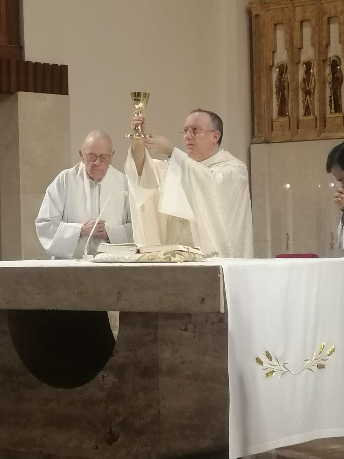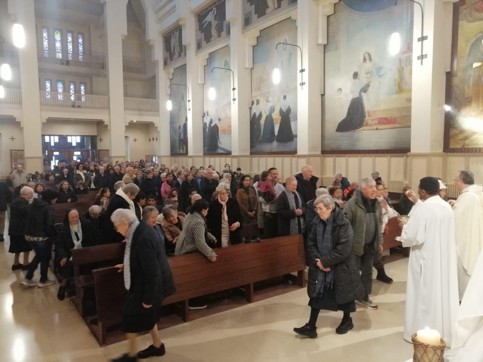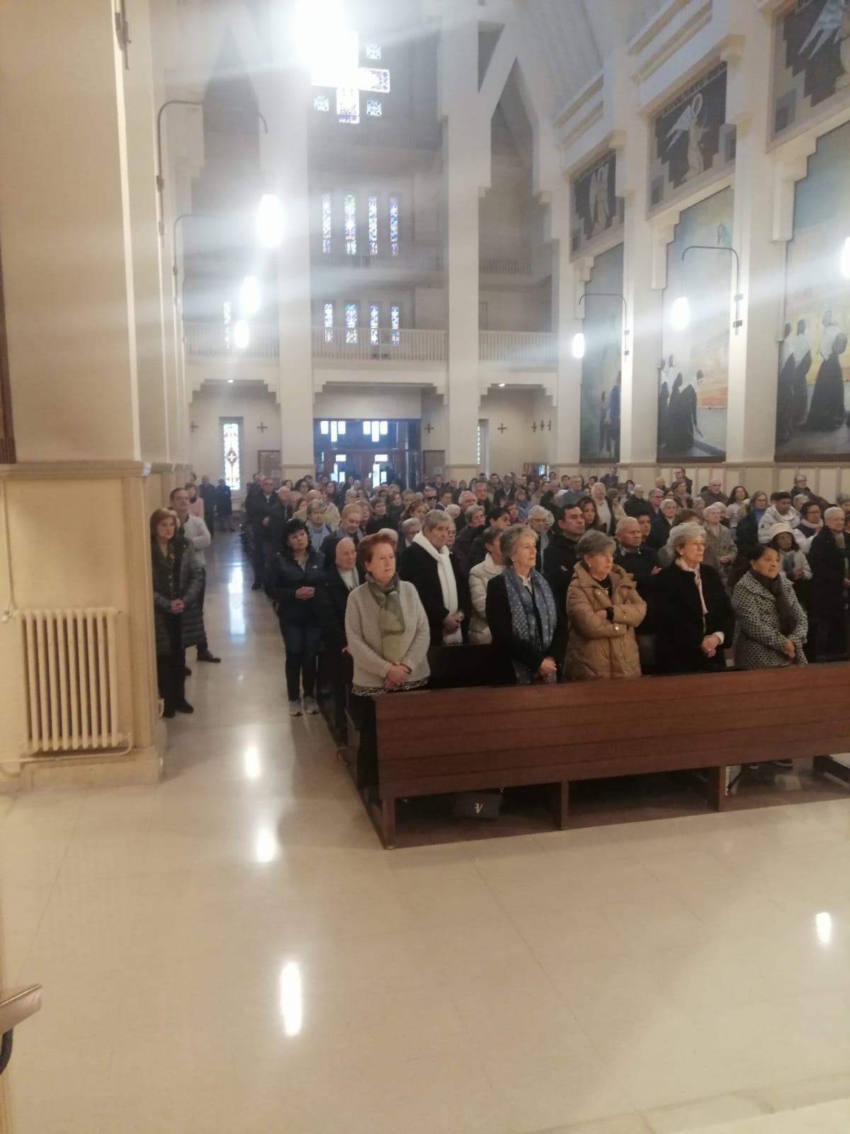 A las 11.30 horas, la comunidad cristiana se congregó de manera muy numerosa en torno al altar. Fieles habituales de la Iglesia, miembros de la Familia Vicenciana… muchas Hijas de la Caridad (Visitadora y Ecónoma Provincial incluidas), representantes de AIC y otros grupos compartieron una Eucaristía vivida con hondura, participación y sentido de familia. Esta celebración fue fruto de una preparación cuidada por la coordinadora de la Familia Vicenciana de Navarra que permitió una participación litúrgica activa.