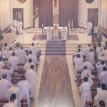 Tras la comida, a las 15:30 se inició la sesión invocando a la Virgen María, pidiéndole que acompañe a los asambleístas: «Oh María, sin pecado concebida, rogad por nosotros que recurrimos a Vos». Varios cohermanos son bienvenidos de nuevo a la Asamblea presencial, después de permanecer aislados varios días por haberse contagiado de covid. El moderador comunica el nombramiento del P. Daniel Pilario como miembro del Dicasterio para la unidad de los cristianos y el diálogo ecuménico; y toda la asamblea le saluda con un aplauso de reconocimiento y apoyo.