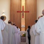 El día 8 de julio, comenzamos la jornada celebrando comunitariamente la eucaristía, presidida por el superior general, P. Tomaž Mavrič, junto al recién elegido vicario general, P. Gregorio Bañaga, y el P. Aarón Gutiérrez, asistente general. En la celebración han proclamado la profesión de fe y el juramento de fidelidad al asumir su servicio. Toda la asamblea ha elevado fervientes oraciones por el Superior general y los recién elegidos miembros de su Consejo.