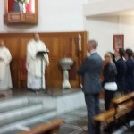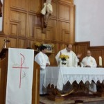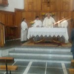 Concluido el descubrimiento de la placa, tuvo lugar una misa en acción de gracias por toda la labor y presencia del P. Jesús Galarreta en los años, que el fue pastor de esta comunidad. El párroco, nos había pedido, que fuera un Paúl el que presidiera y predicara. Y con la iglesia llena de feligreses y la presencia también de la autoridades civiles, tuvimos ocasión de recordar la buena labor del P Jesús, sobre todo por el coro, pues muchos de los que lo formaban, habían comenzado con él; incluso algunos que ya no vivían en el barrio, vinieron para la ocasión y se unieron al coro recordando aquellos cantos que aprendieron el P. Jesús.