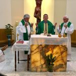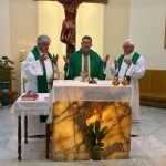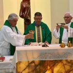 El P. Julián Arana armonizó con entusiasmo las celebraciones, dando solemnidad y animando el canto; “quien canta ora dos veces”, según san Agustín.