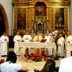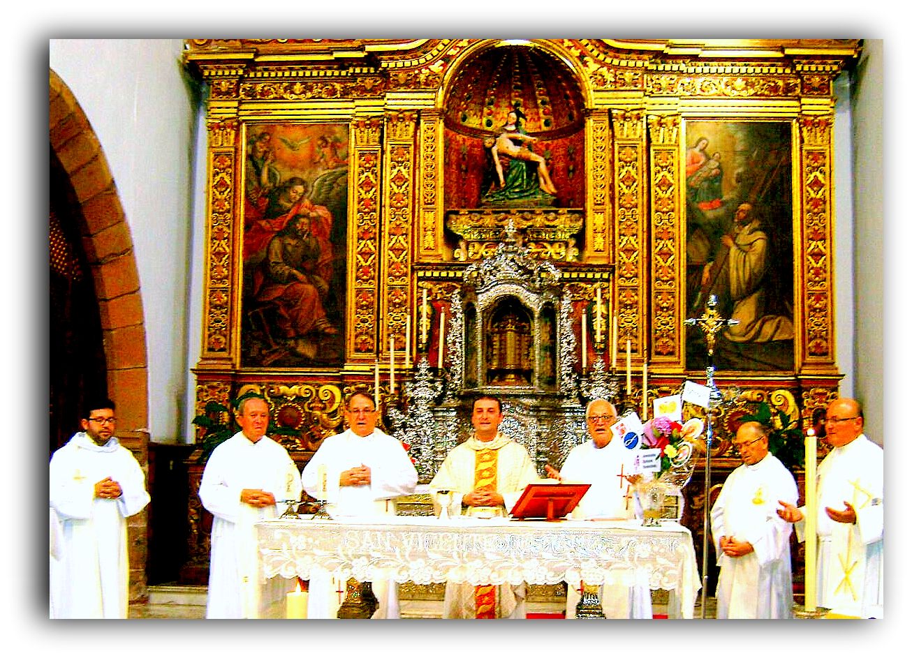 El pasado 27 de septiembre se celebró la festividad de San Vicente de Paúl en la iglesia de Nuestra Señora de los Dolores en La Laguna. En este templo se congregaron las distintas ramas vicencianas para homenajear a su santo fundador. La misa fue presidida por el P. Rayco Zerpa, de los PP. Paules, Rector y capellán del Hospital de Los Dolores. Zerpa realizó una emotiva exaltación sobre los valores de San Vicente llevados a nuestra realidad actual. Junto a él, concelebraron el P. Hernán Ramos, Conciliario de los Paules y el P. Julián Arana, párroco de San Cristóbal de La Higuerita. La música corrió a cargo de los jóvenes de JMV de La Orotava.