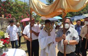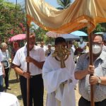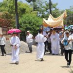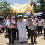 Con júbilo y cantos avanzaba la procesión y se escuchaba: “Viva Jesús Sacramentado…Viva” y daban gracias a Jesús Eucaristía no sólo por la visita sino por su misericordia.