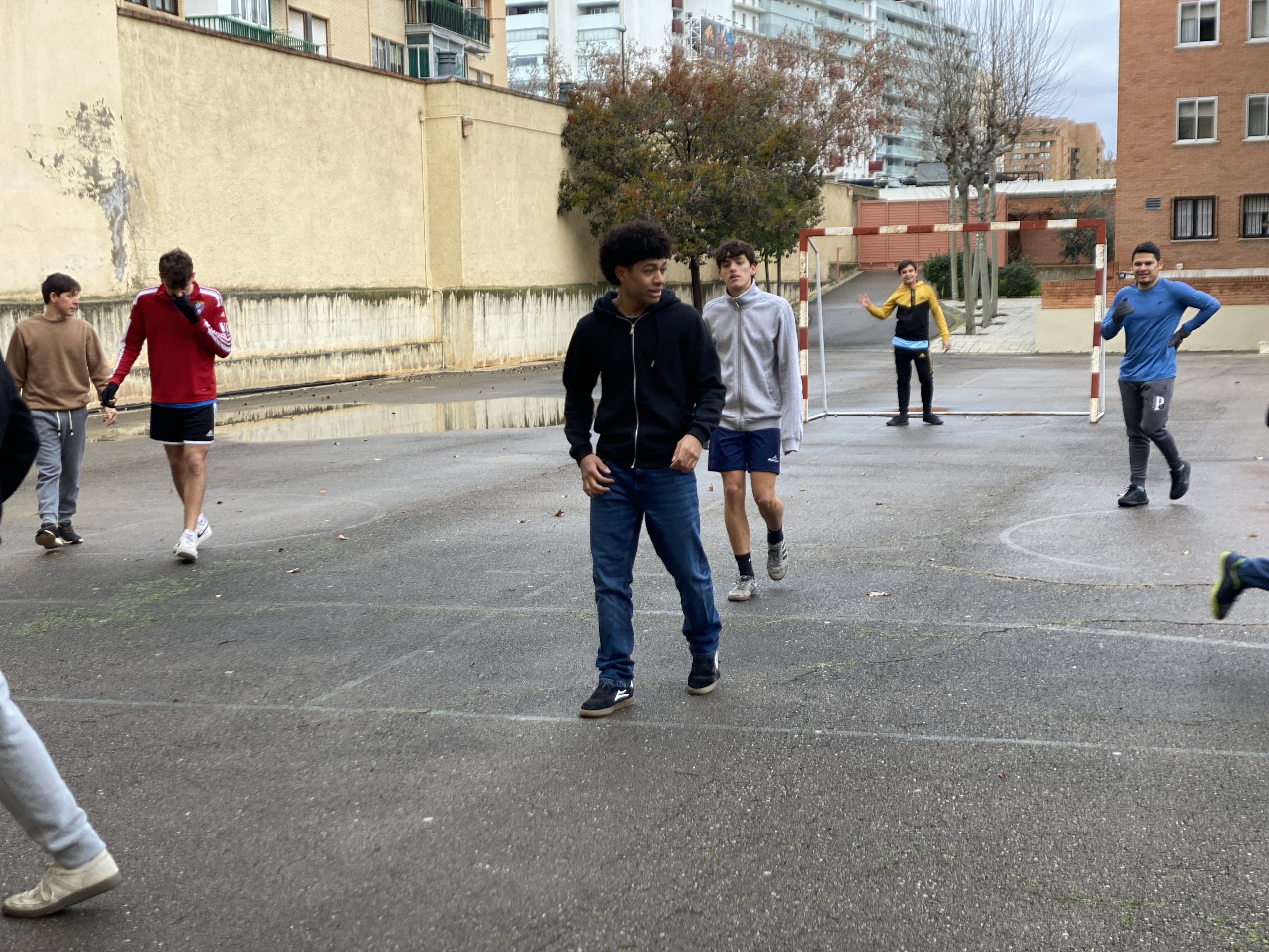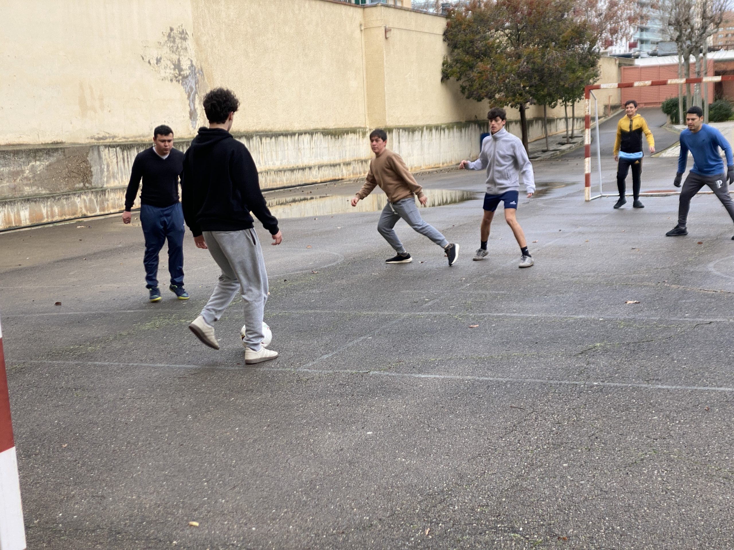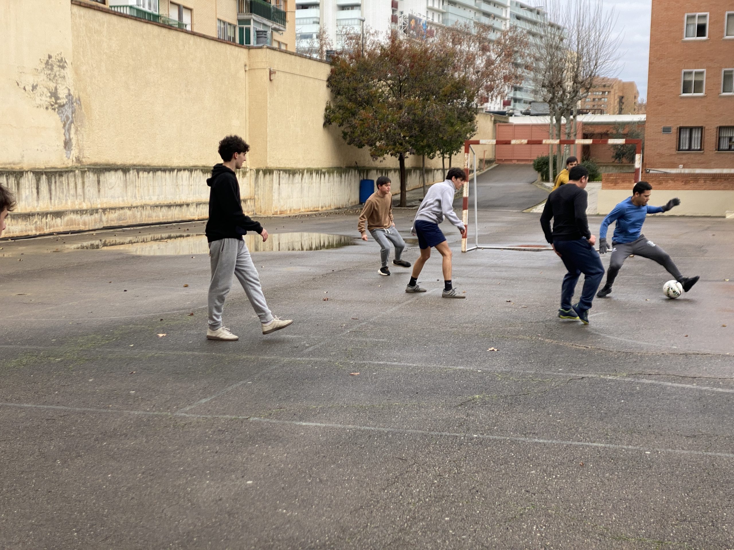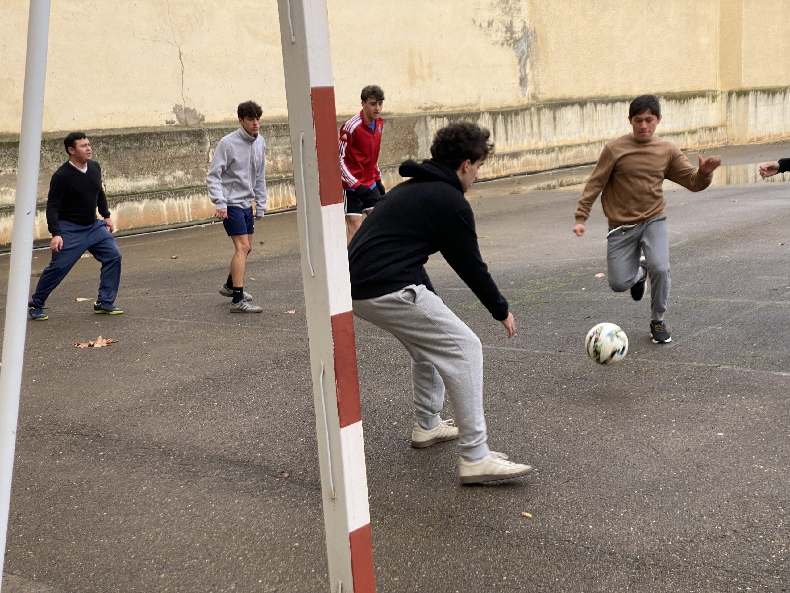 Tras la Eucaristía nos congregamos, los estudiantes paúles de Barakaldo y Zaragoza junto con los jóvenes catecúmenos de Confirmación de la parroquia de San Vicente de Paúl para disputar un partido de fútbol amistoso.