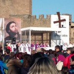 Y por fin, llegamos a nuestro destino, donde ya aguardaba otro numeroso grupo de miles y miles de personas. Allí en Javier vivimos la celebración de la Eucaristía, donde yo especialmente gocé de tres momentos muy emotivos: el primero, al ver y oír cómo todos los que allí nos encontrábamos cantábamos con fervor el canto de entrada, “Reunidos en el nombre del Señor”; y los otros dos fueron la proclamación del Evangelio y la consagración, donde, aunque rendidos por el cansancio, todos se ponían de pie. Fue una celebración muy emotiva en la que el Arzobispo de Pamplona nos recordó lo misericordioso que es el Padre y lo misericordiosos que tenemos que ser los cristianos.
