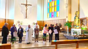 En la celebración del día 26, al mediodía, la parroquia y la asociación han rendido homenaje a cinco personas por su colaboración generosa durante muchos años: Angelita, en la sacristía, con las flores, los manteles y su presencia infatigable en la Iglesia durante casi cincuenta años; los esposos Ana y Antonio, Pilar y Pepe Lucia, que durante los últimos doce años han formado el consejo local de la asociación de la Medalla Milagrosa. Todos nos emocionamos con su testimonio de entrega y disponibilidad. ¡Muchas gracias!