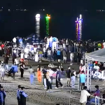 El paseo comenzó a las 9 de la noche luciendo las mejores obras de arte llenando de color la playa, normalmente tranquila y oscura. El espectáculo en un momento fue interrumpido por una tormenta que no duró más de quince minutos. Terminado el baño la multitud siguió el espectáculo hasta ya casi a las 11 de la noche.