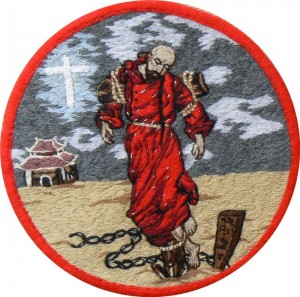 …fue interrogado y soportó todos los sufrimientos reservados para los peores criminales: se le obligó a arrodillarse sobre cadenas de hierro, sobre trozos de cascotes de loza rotos y apaleado de todas las formas posibles, haciendo que su carne cayera a tiras.
