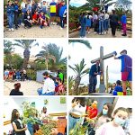 Comenzamos con una sencilla pega de carteles por el barrio con nuestro programa, enviamos por redes sociales toda la información y por fin con muchísima ilusión en colaboración con los grupos de catequesis y grupo de Caminantes, engalanamos nuestro Lomo de la Cruz para comenzar allí la procesión del Domingo de Ramos hasta el templo, con nuestras guitarras y cantos propios del día. También como novedad El Viernes Santo volvimos a recorrer las calles de todos los sectores de la parroquia con el Vía Crucis, viendo como vecinos a los que nos acercamos en el tiempo fuerte de misión participaban en los diferentes actos.