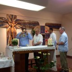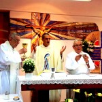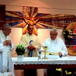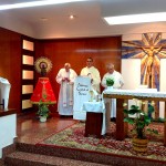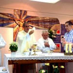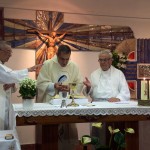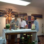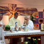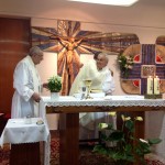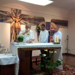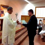 La celebración tuvo lugar en la iglesia parroquial de los Padres Paúles en Casablanca, Zaragoza, a las 13 horas del día 13 de Septiembre de 2014, sábado. Asistieron las personas precisas: familiares próximos, Comunidad de Zaragoza y colaboradores asiduos del equipo seglar de Misiones Populares de Zaragoza. También estaba el P. Jaime Corera, de la Comunidad de Boggiero. En total, no más de 25 personas… Todo fue sencillo y normal; ágil, entrañable, cálido… Se diría que era un acto ordinario de la vida de cada día. El abrazo de la paz, lleno de sonrisas y alegrías íntimas, expresaba sentimientos, a flor de piel, largamente contenidos… Algunos, que conocíamos la historia de lo que estábamos celebrando, percibíamos también un cierto respiro de satisfacción y complacencia interior, que bien podía traducirse en esta exclamación: ¡Ya era hora; se lo merecían hace tiempo!
