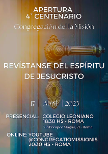 Hemos decidido que la Apertura formal de estas celebraciones se realice el lunes 17 de abril de 2023 a las 18:30 pm, en el Colegio Leoniano de Roma, con una paraliturgia similar al rito de apertura de la Puerta Santa en un año jubilar.