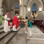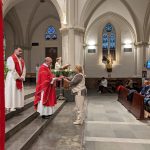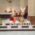 Seguidamente nos trasladamos a la capilla de la Casa San Vicente para la celebración de la Eucaristía, presidida por el P. Oscar Muñoz y concelebrada por los padres Joaquín González y Miguel Botet. En el ofertorio presentamos algunos símbolos alusivos a la fiesta de Pentecostés que estábamos celebrando. En la celebración dimos gracias a Dios por todo lo vivido en este fin de semana de encuentro. Además, se ha impuesto el crucifijo a una nueva voluntaria.