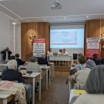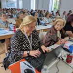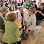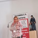 A continuación, se realizó la presentación y ratificación de la nueva Junta directiva y de las nuevas delegadas regionales. La Asamblea asintió aprobando y aplaudiendo a cada uno de los miembros y a la Junta en pleno. La nueva presidenta María Pilar García Martínez tomo la palabra y leyó un sentido texto de reconocimiento, valoración, despedida y agradecimiento a Concepción Santiago con los abrazos y fotografías consiguientes. Y tras un breve descanso e intercambio de saludos y opiniones volvimos al salón para finalizar la mañana con ruegos y preguntas. Finalmente, La presidenta de la Junta nacional leyó el texto de la Clausura oficial de la Asamblea 2024.