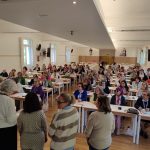 En la tarde tuvimos un tiempo para la reflexión en grupo, por zonas regionales, sobre los desafíos y líneas de acción que salieron del trabajo de la Asamblea del año pasado y de los aportados por D. Raúl Flores Martos en la ponencia de la mañana. Después del descanso y merienda, la presidenta presentó las actividades del último año y la memoria de 2023. Terminamos el día con la celebración de la Eucaristía, dando gracias a Dios por todo lo vivido y recibido en las ponencias y encuentro de trabajo en los grupos.