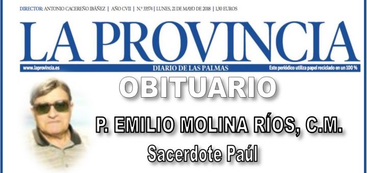 PERIÓDICO LA PROVINCIA – DIARIO DE LAS PALMAS OBITUARIO Lunes, 21 de mayo de 2018 Emilio Molina Ríos, sacerdote paúl La trayectoria de don Emilio Molina Ríos podría describirse de manera inequívoca con los...
