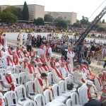 Al día siguiente, día 13 de octubre, desde primeras horas de la mañana, se abrían las puertas de este Complejo Educativo que va acoger la ceremonia de Beatificación de los 522 mártires de la Fe del siglo XX. Los miles de peregrinos van llenando la gran explanada preparada para este magno acontecimiento. Participando en el celebración 25.000 personas. De nuestra familia vicenciana: misioneros paúles, hijas de la caridad, miembros de los diversos grupos y movimientos vicencianos… ocupan sus lugares desde primera hora. A medida que el día avanza el calor de la jornada se deja sentir. Un calor que se ve complementado por la emoción de asistir a la beatificación de estos 522 hermanos nuestros.