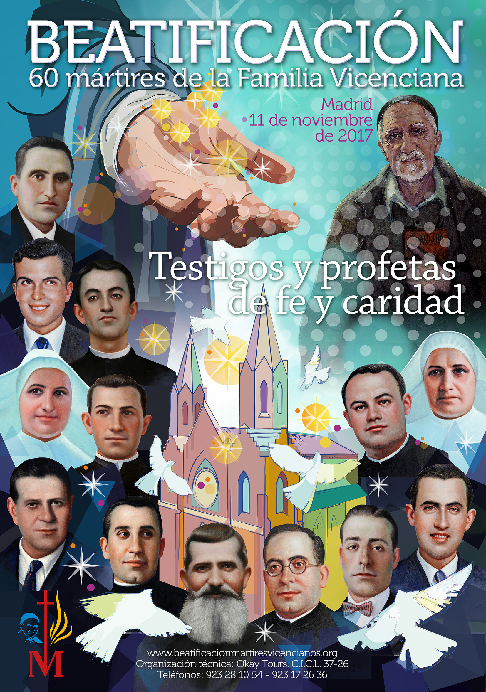 El próximo 11 de noviembre, a las 11:00 horas, 60 víctimas de la persecución religiosa del siglo XX –sacerdotes, consagrados y laicos de la Familia Vicenciana nacidos en diversos lugares de España– serán reconocidas en la Iglesia como mártires de Cristo y beatificadas en el Palacio de Vistalegre de Madrid por el cardenal Amato, prefecto de la Congregación para la Causa de los Santos.