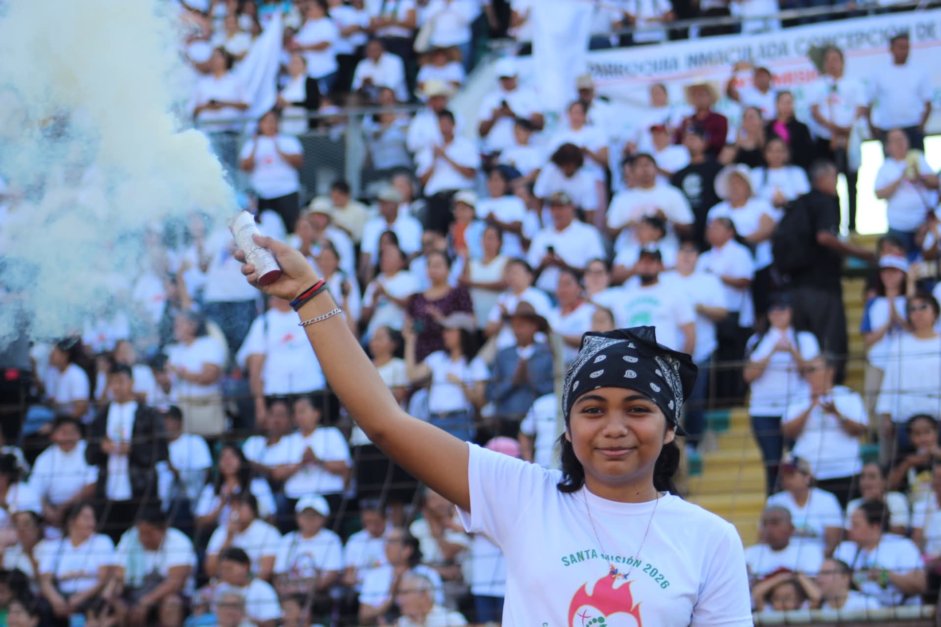 Más de 35.000 personas se dieron cita en el estadio olímpico de San Pedro Sula bajó un sol de justicia. De nuestra parroquia Santiago apóstol de cuyamel se hizo presente con 15 buses y carros particulares, con una participación de más de 800 feligreses. Desde la comunidad más lejana, Suyapita, fueron 15 buses.