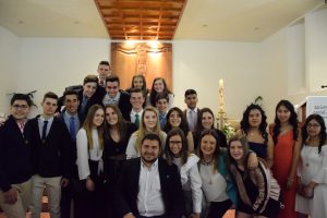 La celebración del sacramento de la Confirmación fue presidida por Don Santiago Aparicio, vicario episcopal de nuestra zona, y concelebrada por los Padres Santi Azcarate, Joaquín Estapé y José Manuel sacerdote alavés tío de uno de los confirmandos. D, Santiago, en su homilía hablo a los jóvenes de lo bonito que es fiarse de Cristo y seguirle con valentía. También les invitó a decir que sí a la vocación que el Señor tenía pensada para cada uno de ellos.