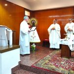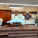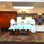 La Eucaristía concelebrada por todos ha estado presidida por el P. Julián Arana, que cumple este año los cincuenta de ordenación y los sesenta de vocación, a quien acompañaban en el altar el P. Santiago Azcárate, que celebra los 50 años de vocación, y el P. David Carmona, superior de la comunidad de Casablanca. El P. Julián ha dado gracias a Dios por este tiempo vivido y nos ha recordado la importancia de revitalizar nuestra identidad para seguir creciendo en nuestra vocación.