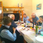 Esa misma gratitud nos reunió como hermanos peregrinos hacia la plenitud alegre de la vida en Cristo. De ese modo, festejamos, en la misa y en la mesa, nuestro modo de ser cristianos. El incondicional Marino; ayudado por las geniales Isabeles, Adely y Rosario; nos deleitó con unas ricas chuletas de cordero y morcillas manchegas, regado con vino de la tierra y aderezado con fruta de temporada.