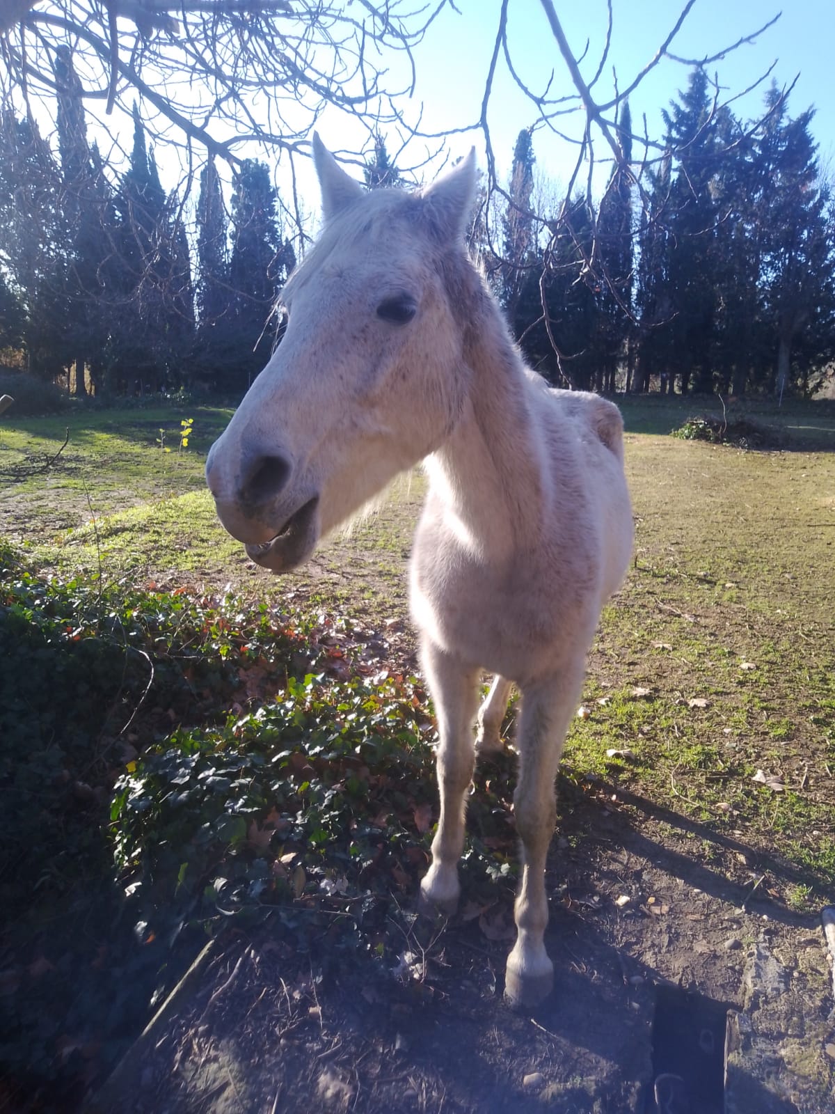 Además de los participantes, hemos estado acompañados de dos singulares personajes: Un precioso gatito que todavía no cuenta un año de edad, llamado Mandarino. Y un precioso y anciano caballo blanco de competición, llamado Cold Air, que es propiedad del jardinero, y al que podías acercarte a alimentar con pan seco. Ahora ya está retirado, y quien compite es su hijo.