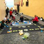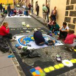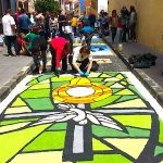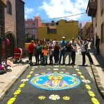 Familias enteras se reunieron a confeccionar sus alfombras, así como las cofradías de nuestra Parroquia, y los grupos diversos: Cáritas, Catequistas, Hermanas de Marta y María, Hermanos de la Divina Providencia, Pastoral de la Salud, Colegio de San Agustín, Artenerife, Museo de Artesanía Iberoamericana, y un largo etc.