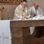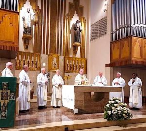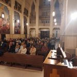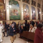 Terminamos la Eucaristía con el himno a San Vicente y compartiendo en el salón de la Milagrosa un piscolabis.