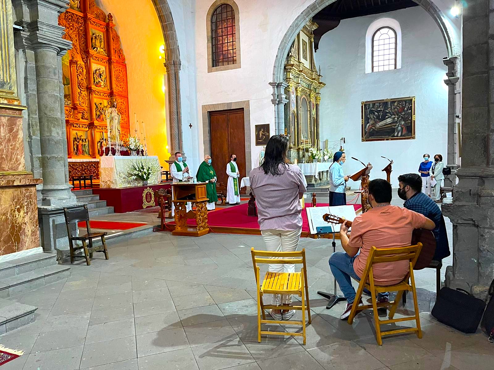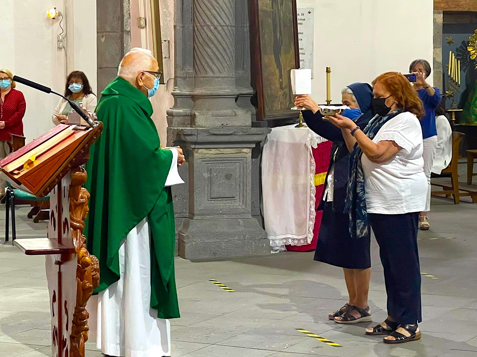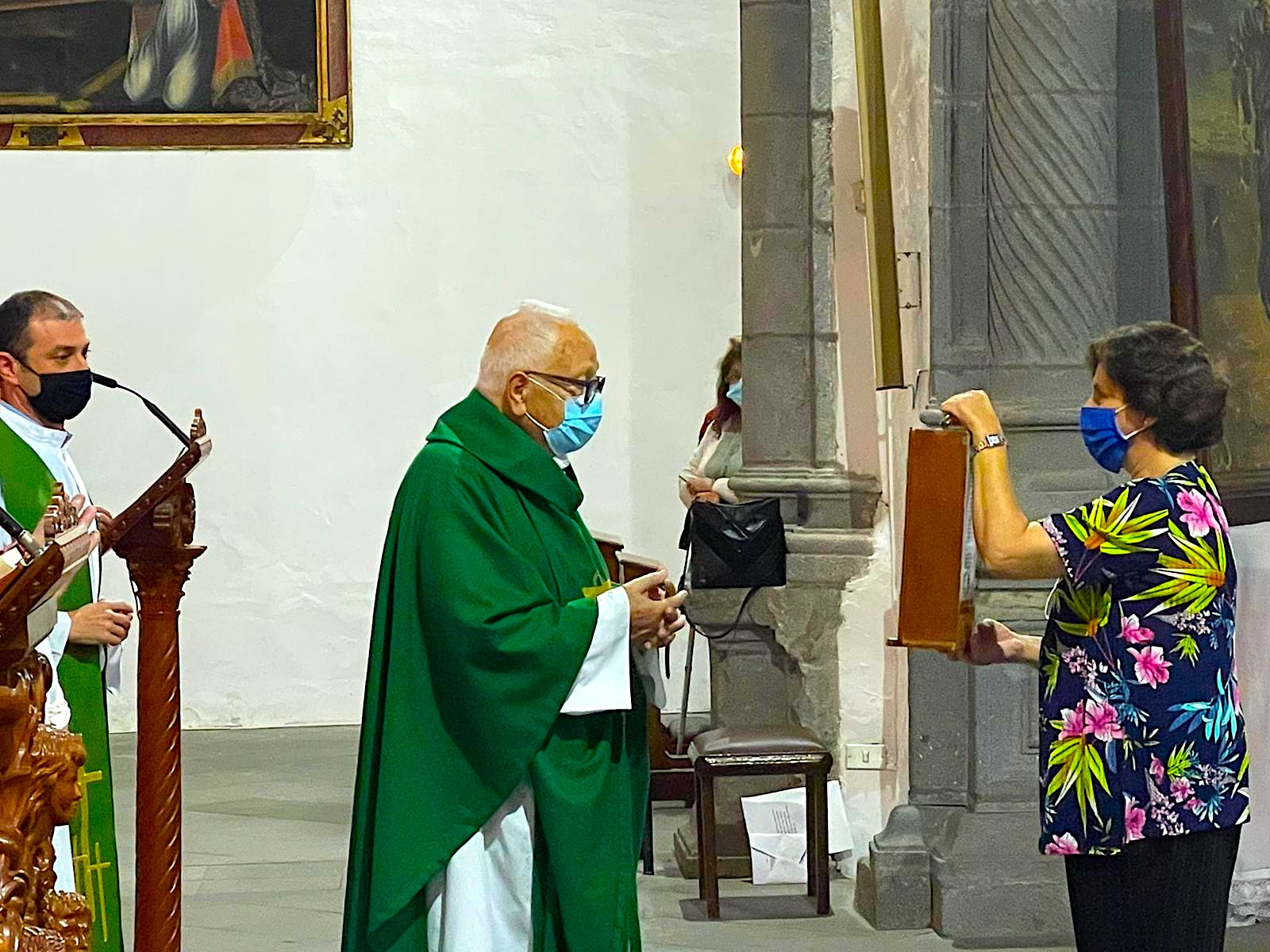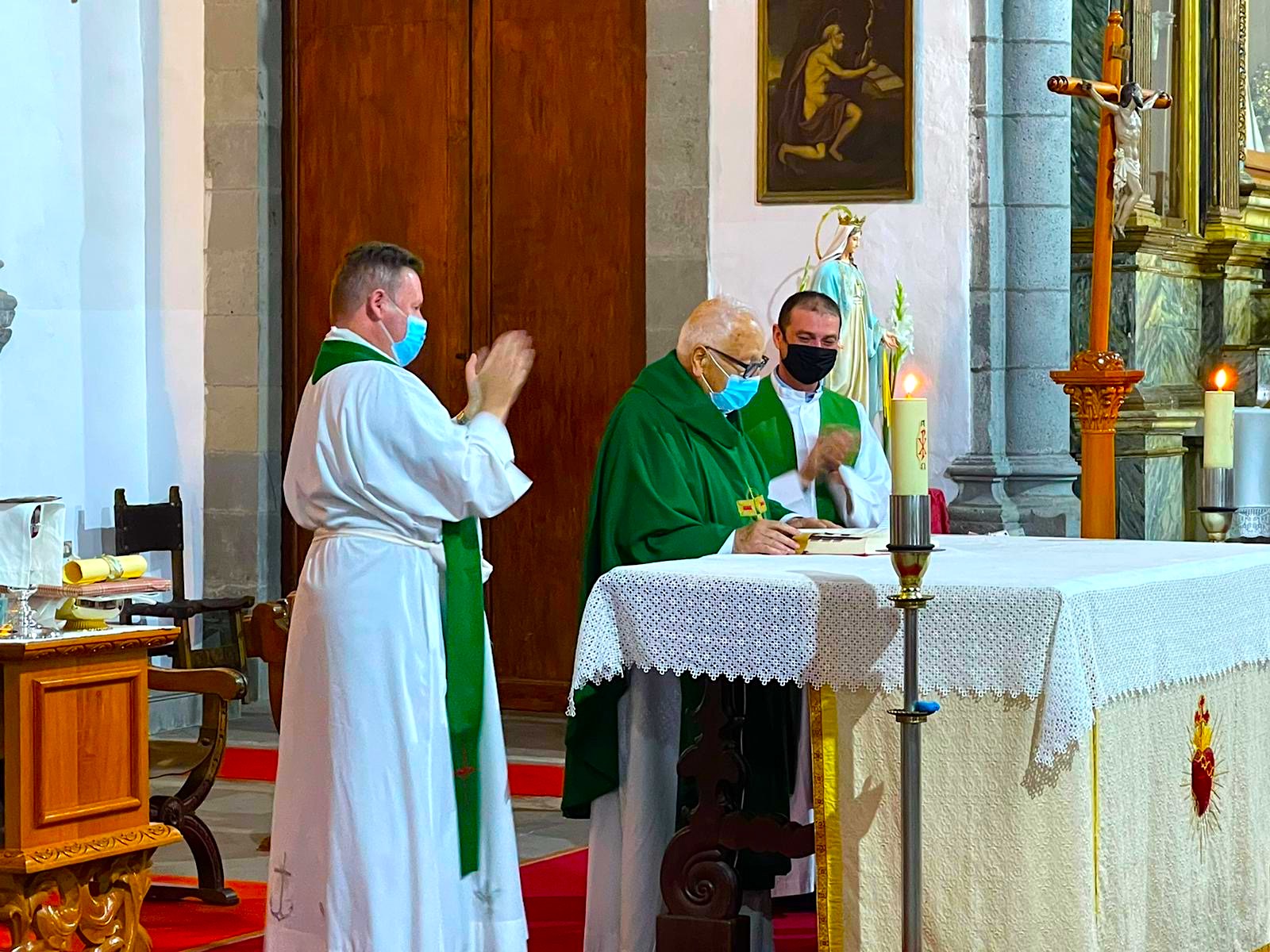 El domingo 27 de junio, la Parroquia de Sto. Domingo de Guzmán de La Orotava, se vistió de gala para homenajear al P. José Vega Herrera por sus sesenta años de sacerdocio, por parte de la Asociación de La Medalla Milagrosa. Acompañándolo en el altar, estaba el Consiliario de la Asociación, el P. Rayco Zerpa, y el Vicario Parroquial, el P. Joaquín Estapé.