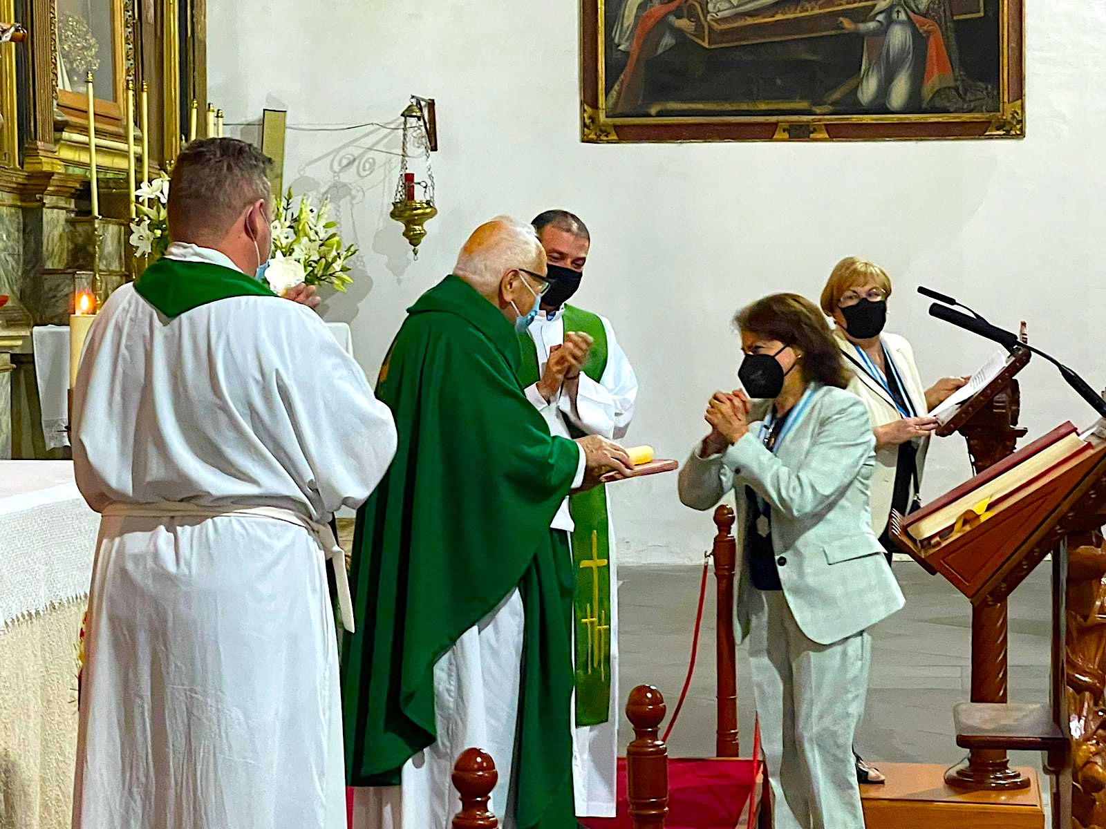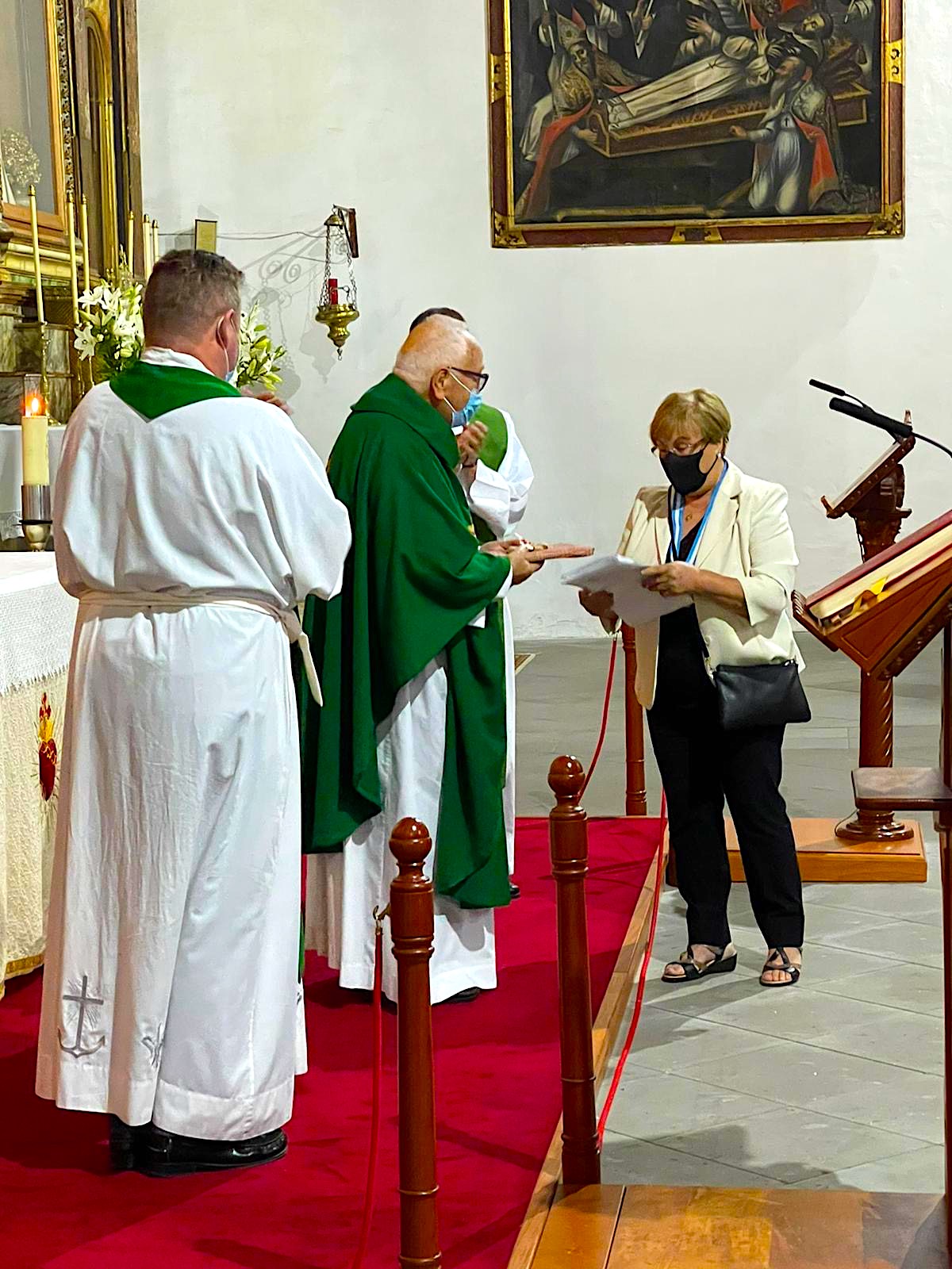 Tras la Eucaristía y la bendición de la nueva imagen, las asociadas a la AMM, leyeron un manuscrito en el que agradecían al P. José todo su trabajo y cuidado de la Asociación, y entregaron al P. José un marco con una fotografía.