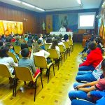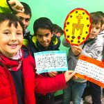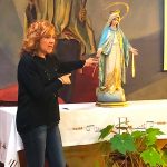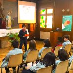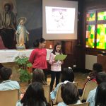 Los niños escucharon con atención la historia de Santa Catalina, la aparición de la Virgen, la historia de la medalla y la explicación de los signos que aparecen en ella.