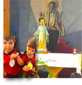 Los alumnos de 1º y 2º de primaria, han llevado a la celebración una medalla y una pulsera de la Virgen Milagrosa, realizada por ellos mismos, con ayuda de sus tutoras.
