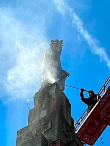 Para acceder a todo el área de actuación se ha echado mano de una grúa con gran movilidad que permite un fácil acceso a todas las zonas. Como se puede ver en las fotografías recibidas, se puede trabajar desde la grúa e ir rectificando cada deterioro. La pintura final dejará el conjunto más bello y armónico para el disfrute y la atracción de los numerosos viandantes que transitan por la zona