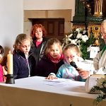 Hacia las 12:30 h. comenzamos la Eucaristía, presidida por P. Corpus Delgado, en la que participaron varios alumnos de primaria. El estudiante paúl Aarón Delgado nos acompañó con la guitarra, y tuvimos una celebración entrañable, abierta a todos los peregrinos que se encontraban en el lugar.