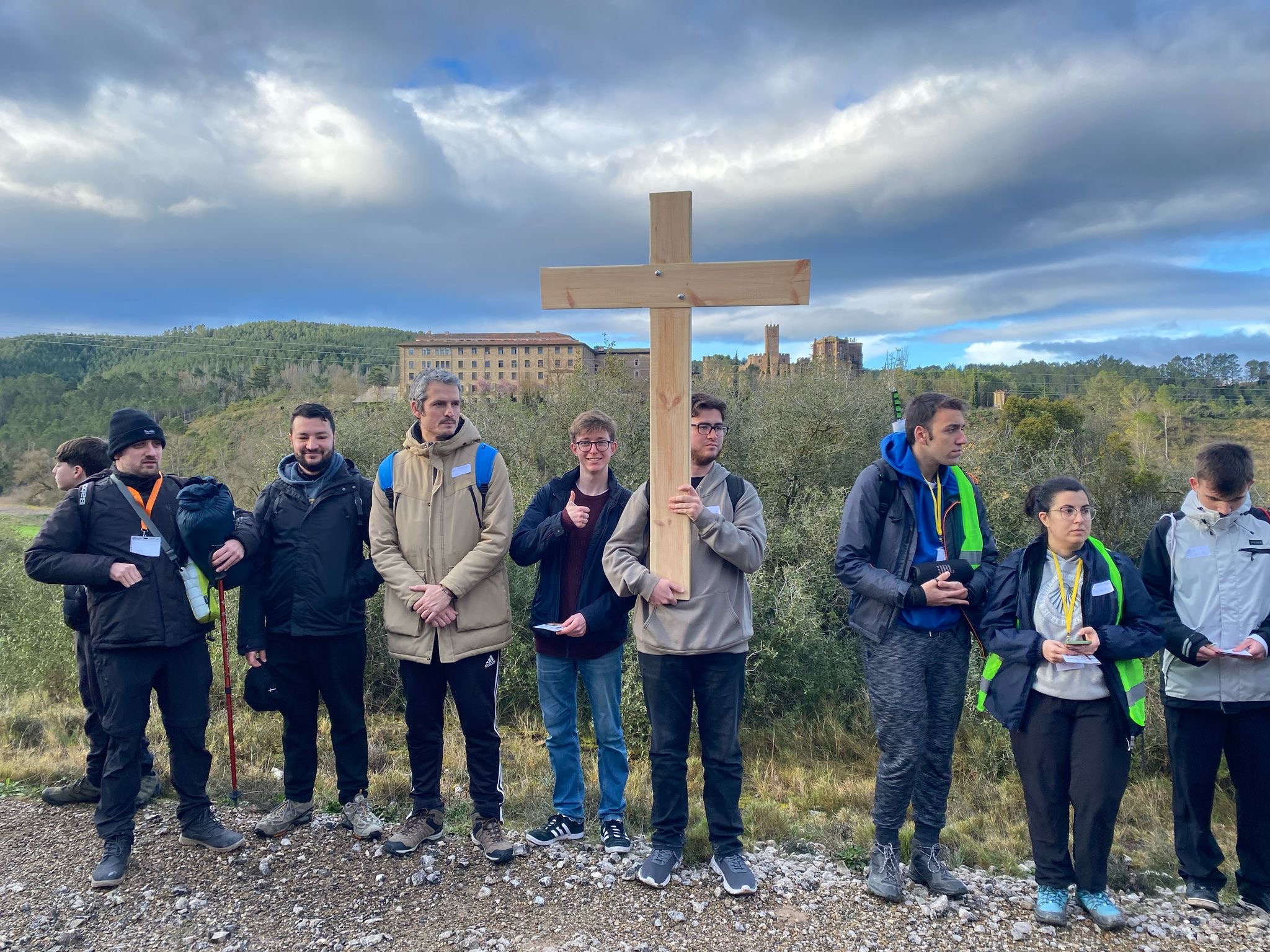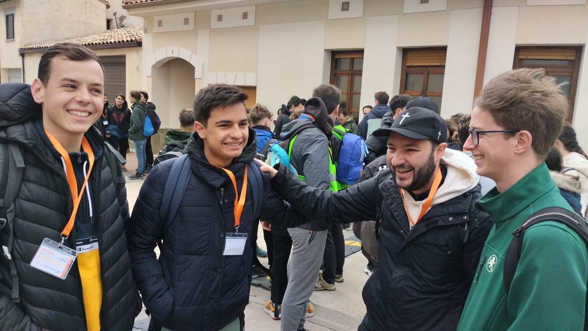 Junto a los jóvenes de la Diócesis de Zaragoza, partimos muy temprano hacia la localidad de Lumbier, donde comenzó nuestra peregrinación. Contra lo que se pronosticaba, el tiempo fue favorable, aunque con algo de lluvia. Tras atravesar la impresionante foz, llegamos a Liédena, donde recibimos una catequesis grupal, celebramos la Eucaristía y compartimos la comida. Por la tarde, continuamos la caminata -sin pausa pero sin prisa- hasta el Centro Diocesano de Javier, donde pasamos la noche. Tras la cena, participamos en una vigilia, que nos ayudó a prepararnos espiritualmente para nuestra llegada, al día siguiente, al castillo del Patrono Universal de las Misiones.