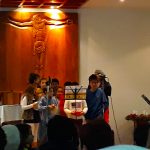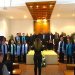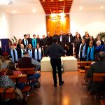 Comenzamos a las 16:30 con los niños nerviosos y los papás ansiosos de verlos. El público se mostraba emocionado por esta actividad y todos dispuestos a disfrutar del evento. Los niños Ariadna y Rodrigo dieron inicio a la fiesta actuando como unos excelentes presentadores. El primer grupo en deleitar nuestros oídos con sus voces fue el de catequesis de adultos que, dirigido por el P. Santi, nos dio una buena demostración de cómo cantar, deleitándonos con unos campanilleros muy entonados.