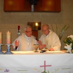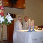 La Vigilia Pascual tuvo especial relevancia, tanto en la Estrella como en San Vicente. Intentamos, por todos los medios a nuestro alcance, significar que dicha celebración constituye el eje central de la liturgia cristiana, y que el acontecimiento que celebramos, la Resurrección de Jesús, es el centro y fundamento de nuestra fe. Los cantos y la participación activa de los fieles contribuyeron a dar realce a la celebración. En San Vicente, el P. Marino hasta se atrevió a cantar él solito, con su guitarra, la “Angélica”, ese canto solemne y gozoso que anuncia al mundo entero la Buena Nueva, y que nos convoca a todos a contagiar la alegría de la vida nueva inaugurada en Cristo Resucitado.