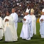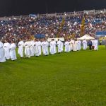 Pero no fue esta la única coincidencia. El domingo, día 2, y el lunes, día 3, celebraba el Sr. Obispo de San Pedro Sula, D. Ángel Garachana, los 25 años de su ordenación episcopal y de su pontificado en la Diócesis. El domingo hubo un gran acto en el Estadio de San Pedro donde se congregaron miles de católicos y al que acudieron todos nuestros compañeros de la comunidad de Puerto Cortés-Cuyamel. Al día siguiente, todos regresamos a San Pedro para participar en la comida-homenaje al Sr. Obispo. Estaban presentes, entre otros, el cardenal Madariaga, arzobispo de Tegucigalpa, y nuestro querido P. Luis Solé, obispo de Trujillo. El saludo a D. Ángel fue cordial y cercano. Dio la casualidad, además, de que al día siguiente invitó a una gira a los familiares que había recibido desde España para el acontecimiento y todos ellos nos visitaron en la casa de Puerto Cortés.
